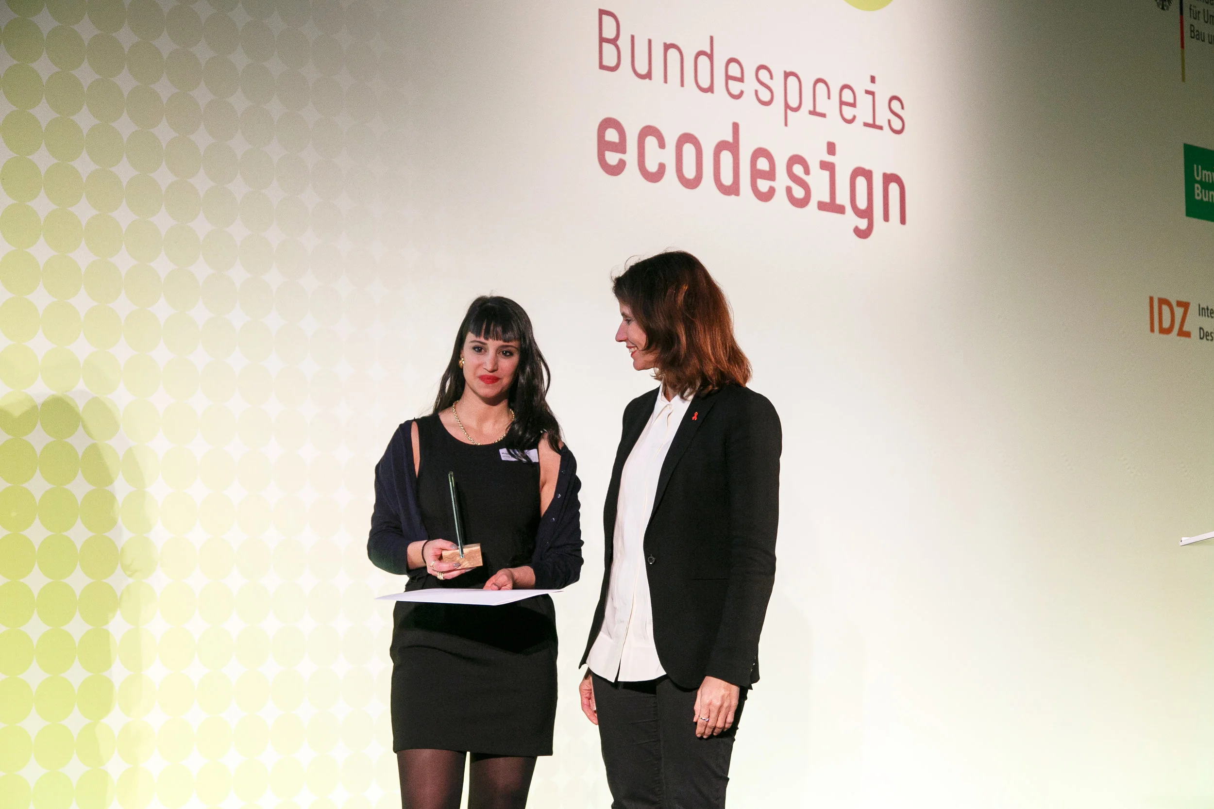 Officially presided by the Federal Environment Minister Dr. Barbara Hendricks, the German Federal Ecodesign Award granted annually by the Federal Environment Ministry (BMUB) and the Federal Environment Agency (UBA) in cooperation with the International Design Center Berlin (IDZ), recognises and honours pioneers in the field of ecological design.